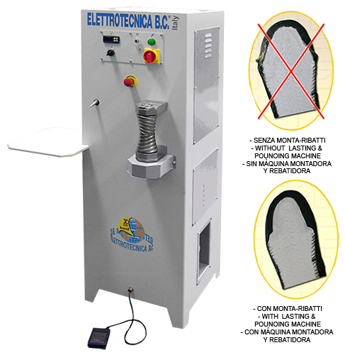 Máquina para montar, rebajar y reparar todas las partes de un zapato que no han sido correctamente montado o pegado.