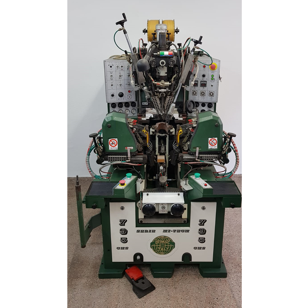 Máquina para el montado del talón y el enfranque del zapato con cola termoplástica en rollos.