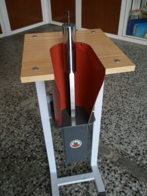 MAQUINA PARA CALZADOS, AVELLANA LA PLANTA PARA FACILITAR LA INTRODUCCION DE LA CABEZA DEL TORNILLO AL PREFIJAR EL TACON