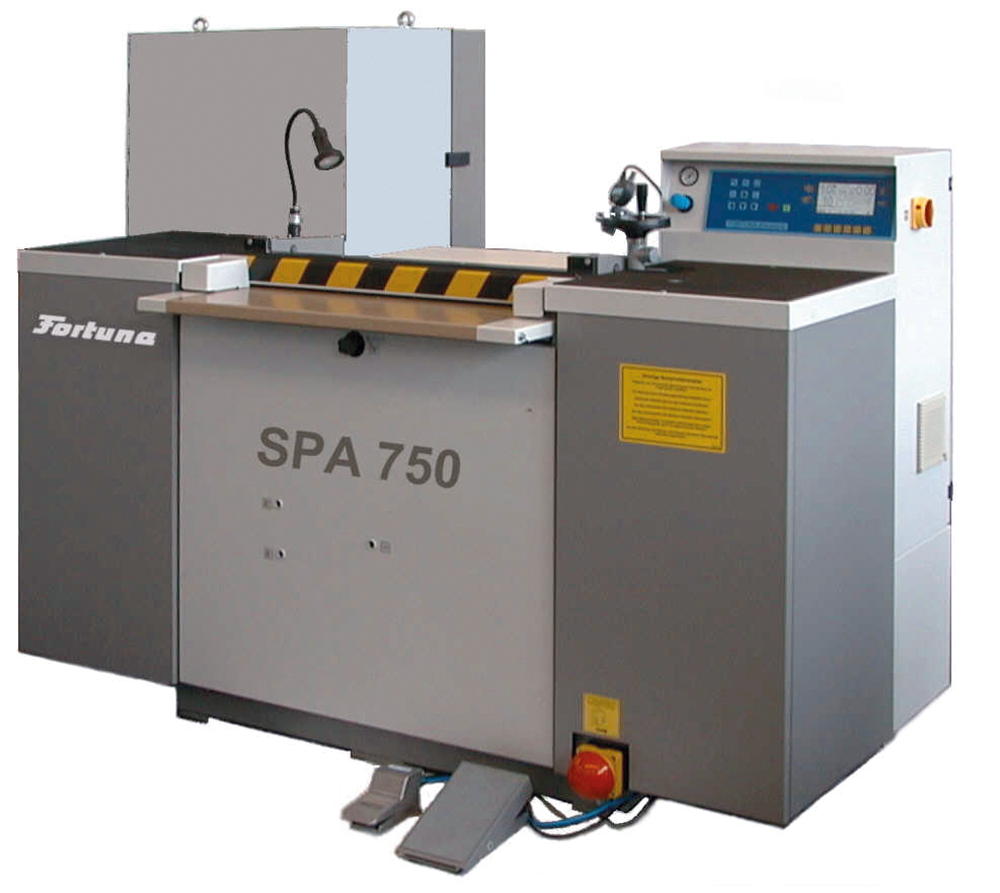 Máquina de corte de cuchillas de precisión para la división de cuero y materiales similares en la industria del calzado y artículos de cuero, así como para accesorios de interior en la industria automotriz.