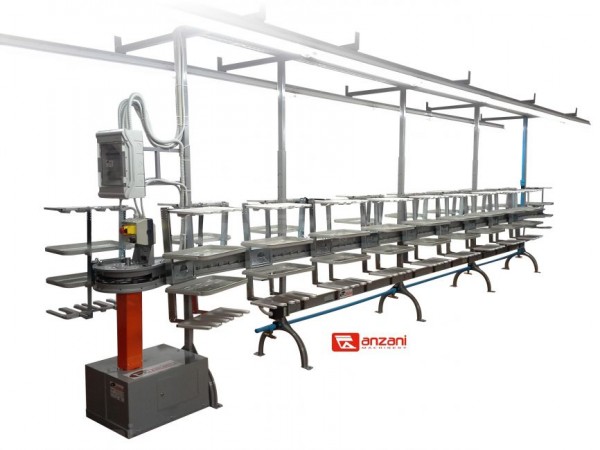 MULTIPLEX es un transportador de cadena automático para el montaje y acabado de cualquier tipo de calzado. La velocidad es continua y ajustable, para ajustar los tiempos de producción. El transportador se puede configurar de 1 a 3 pisos , con la posibilidad de tener una velocidad ajustable para cada piso, proporcionando un motor independiente por piso.